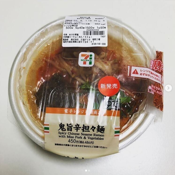 Hanabi(食べ歩き)さんがセブンイレブンで購入したのは「鬼旨辛担々麺」。スッキリとした程よい辛さでおいしかったそうですよ!電子レンジ調理なので、熱いコンロの前に立つ必要もなく、夏にピッタリの担々麺がおうちで食べられるなんて嬉しいですよね。