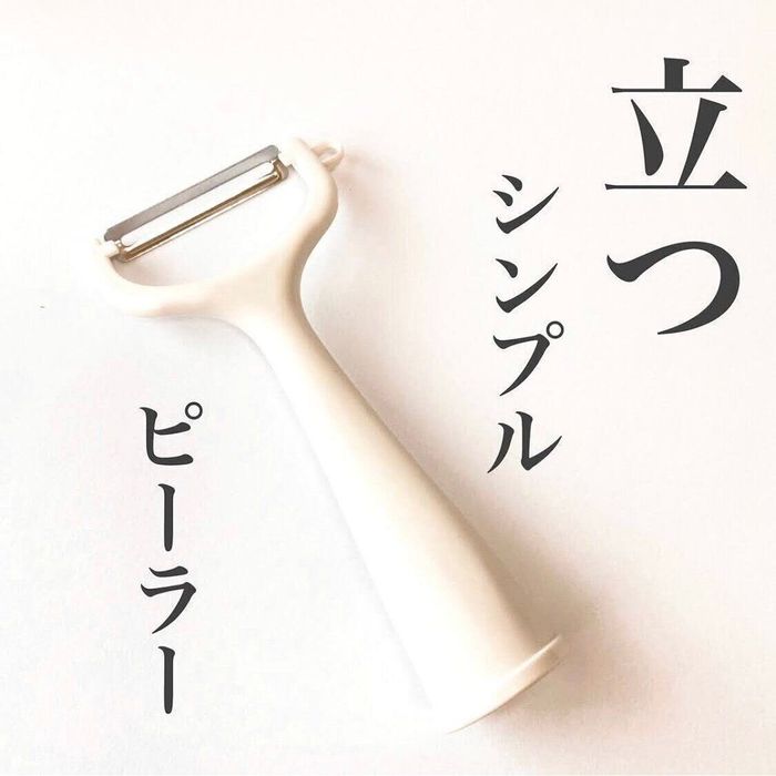 100均マガジンさんの購入品は自立可能なピーラー。皮むきの作業中ちょっと手を放すときなどピーラーを立てたままにしておけるので衛生的ですね。デザインや色もシンプルでオシャレなので、こだわりのキッチンインテリアにも馴染みやすいのではないでしょうか。