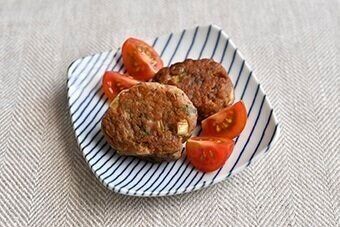 (2)ボウルにいわしのすり身、(1)、おろししょうが、Aを入れて混ぜ合わせ、たねの4/5 量を2等分にして小判形に成形する(大人分)。残りの1/5 量に水小さじ1(材料外)を加えて混ぜ、食べやすい大きさの小判形に成形する(子ども分)。