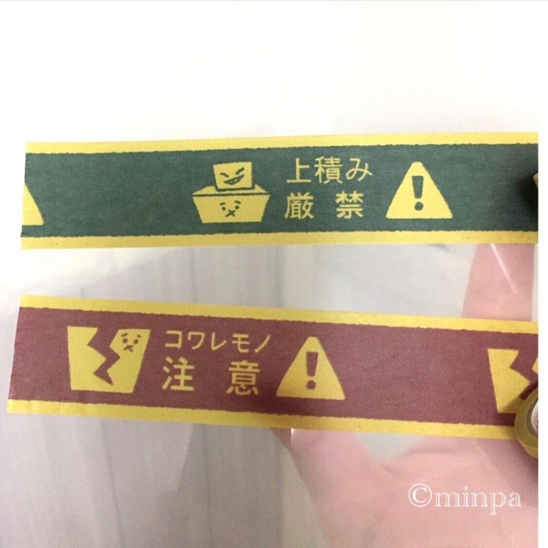 猫作家 みんとぱーる工房 中の人さんが購入したのは注意喚起用のマスキングテープ。4種類あったそうですが、よく使うであろう2種類を購入したそうです。デリケートな商品を発送する際にぜひ使いたいですね。