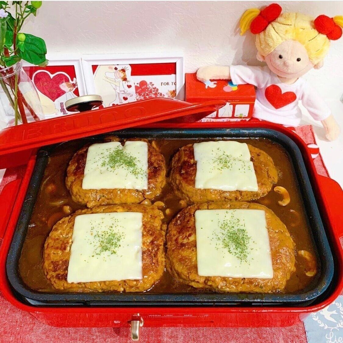 コストコが大好きなあぴさんが作ったのは煮込みハンバーグ。プルコギをフードプロセッサーで細かくしてからつなぎとあわせて成形したようです。チーズを乗せてボリューム満点ですね。