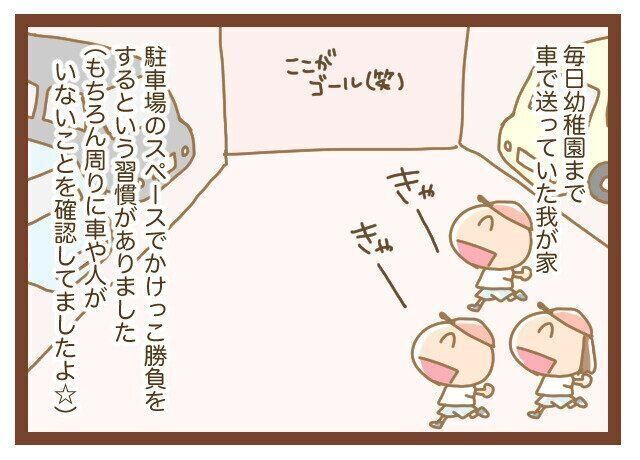 我が家は、何故か駐車場のスペースを3人がかけっこで勝負する!という習慣がありました☆