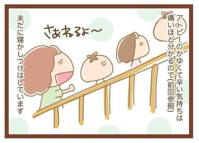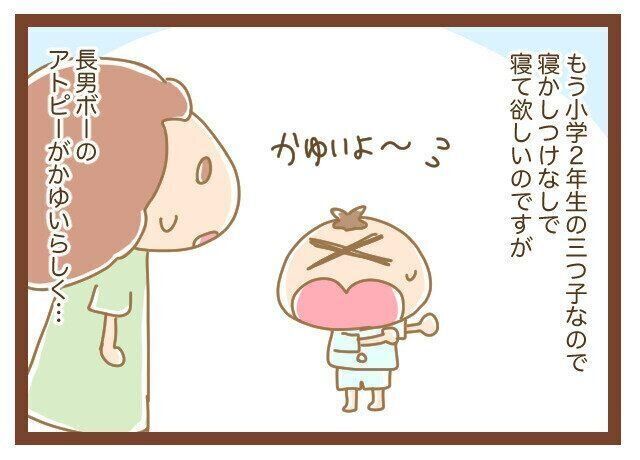 寝かしつけなしで寝かせる事もあるのですが、ボーがアトピーがかゆいと言うんですよね。それは仕方ないので(私も小さい頃同じでした☆)寝るまでさする事にしています☆