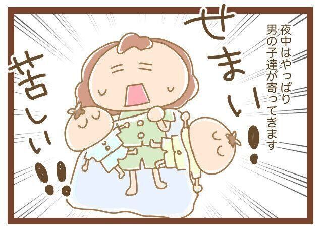 三つ子の寝かしつけのお話は過去に描かせてもらったのですが、今回は最新バージョンをお送りします☆