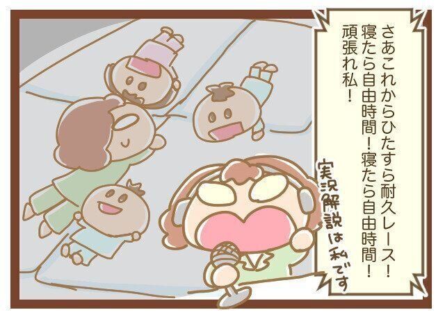 今はもう多少光があっても気にせず寝るのでスマホだったりタブレットで漫画とか動画を楽しんでいるので楽なものですが、三つ子が小さいときは完全に寝たふりをしなければいけません。