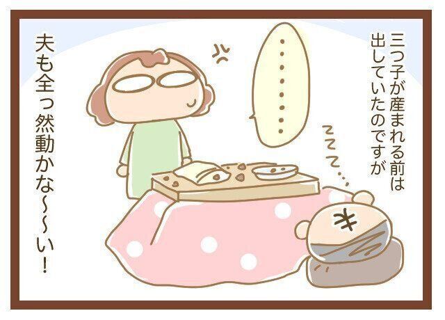 三つ子が産まれる前には(夫が)出していたのですが、そこから一切動こうとしない夫に本っ当にストレスで!!(笑)