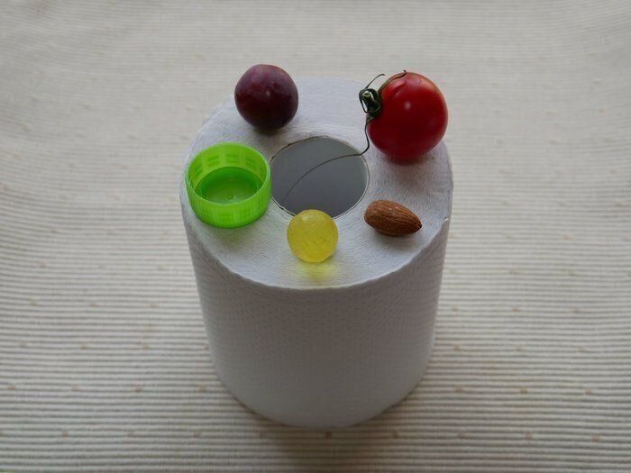 トイレットペーパーの芯を通るサイズの小さいものは子どもの近くにおかないようにしましょう。