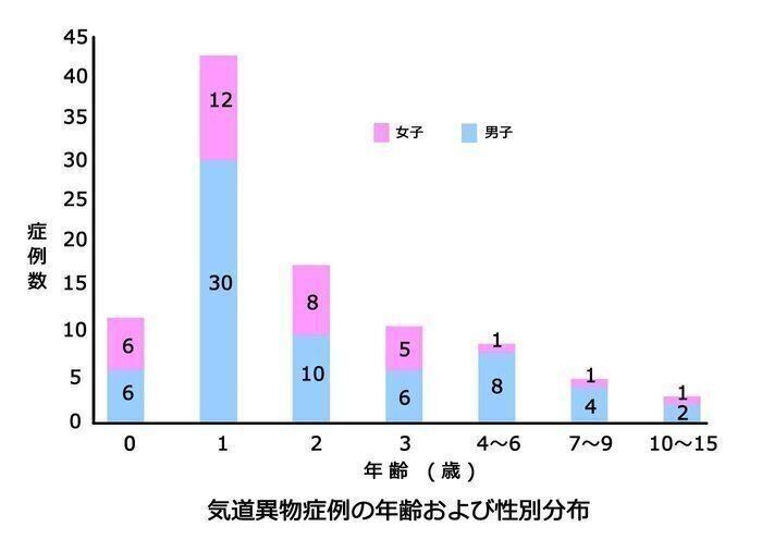 気道異物症例の年齢および性別分布