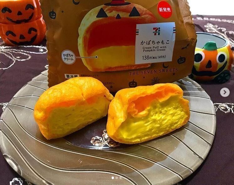 セブンイレブン「もこシリーズ」で「かぼちゃもこ」を購入したlove.pumpkin.loveさん。セブンイレブンのかぼちゃスイーツはおいしくて、毎年楽しみにしているんだとか。この「かぼちゃもこ」も、もっちりとした食感の生地とたっぷり入ったかぼちゃクリームがおいしかったそうですよ!