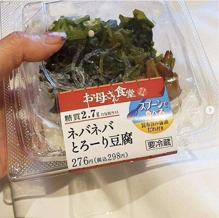 japanese.veganlifeさんが購入したのは「ネバネバとろーり豆腐」。豆腐の上に海藻やオクラが乗せてあり、昆布だしの醤油たれが付いているお惣菜です。とてもおいしくてファミリーマートで毎日買っていたことがあるんだとか!おいしくてヘルシーなので、ダイエット中の強い味方になりそうですよね。