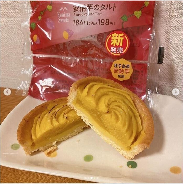 ファミマスイーツシリーズの「安納芋のタルト」を購入したIMOKOさん。タルト生地がしっとりしていてバター味が濃く、さつまいもペーストはスイートポテト感がたっぷりあり、優しいおいも味でおいしかったそうですよ!しかも、184円とお得なら気軽に買って帰れますよね!