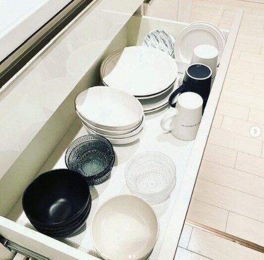 n_homeさんはセリアのすべり止めマットを引き出しタイプの食器収納に使用しています。引き出しを開ける度にずれていたシートも、すべり止めマットを使用してからは全く動かなくなったそうです。ほんの少し変えるだけで、日々の小さなストレスが軽減されるのは嬉しいですね。