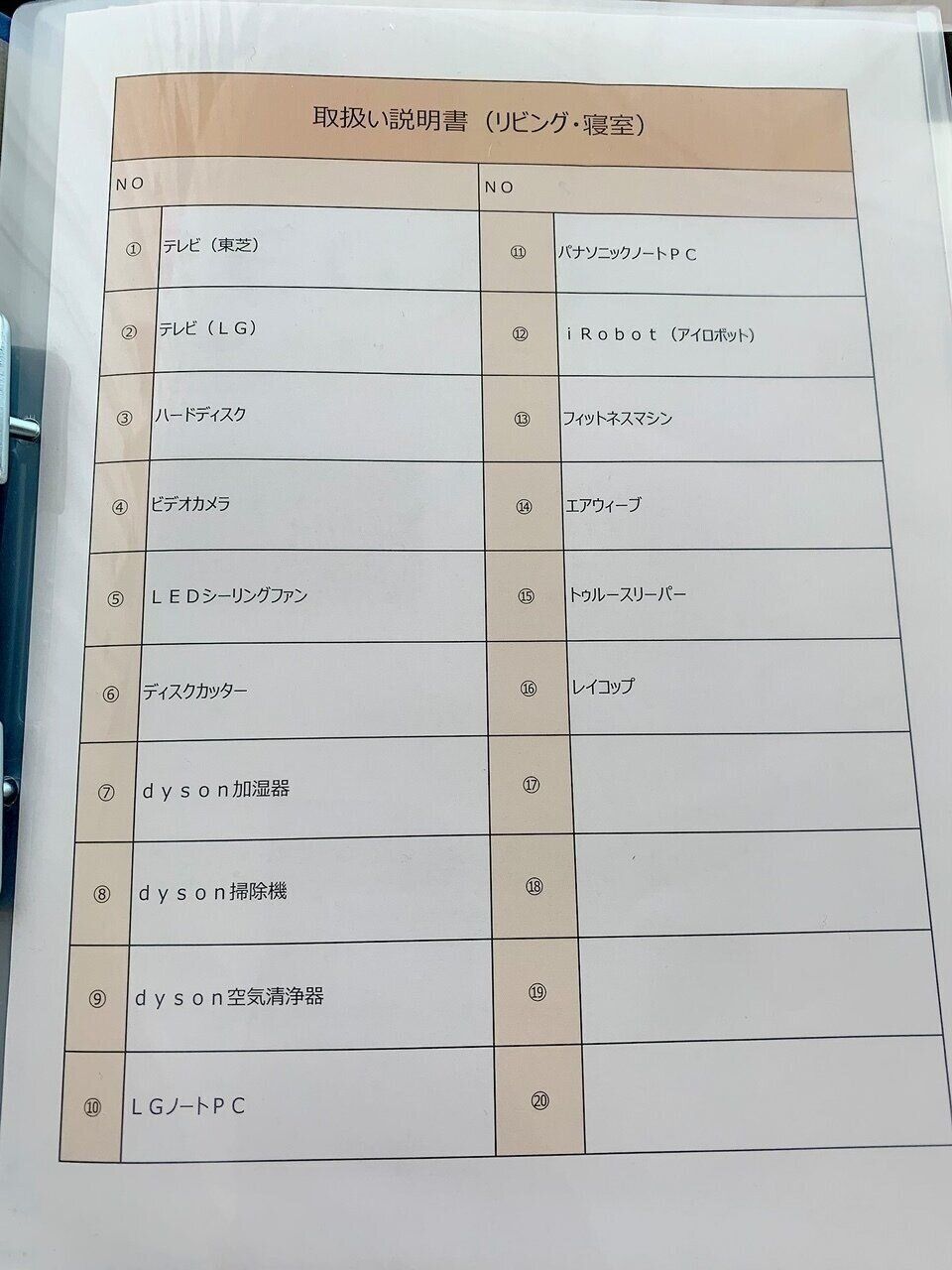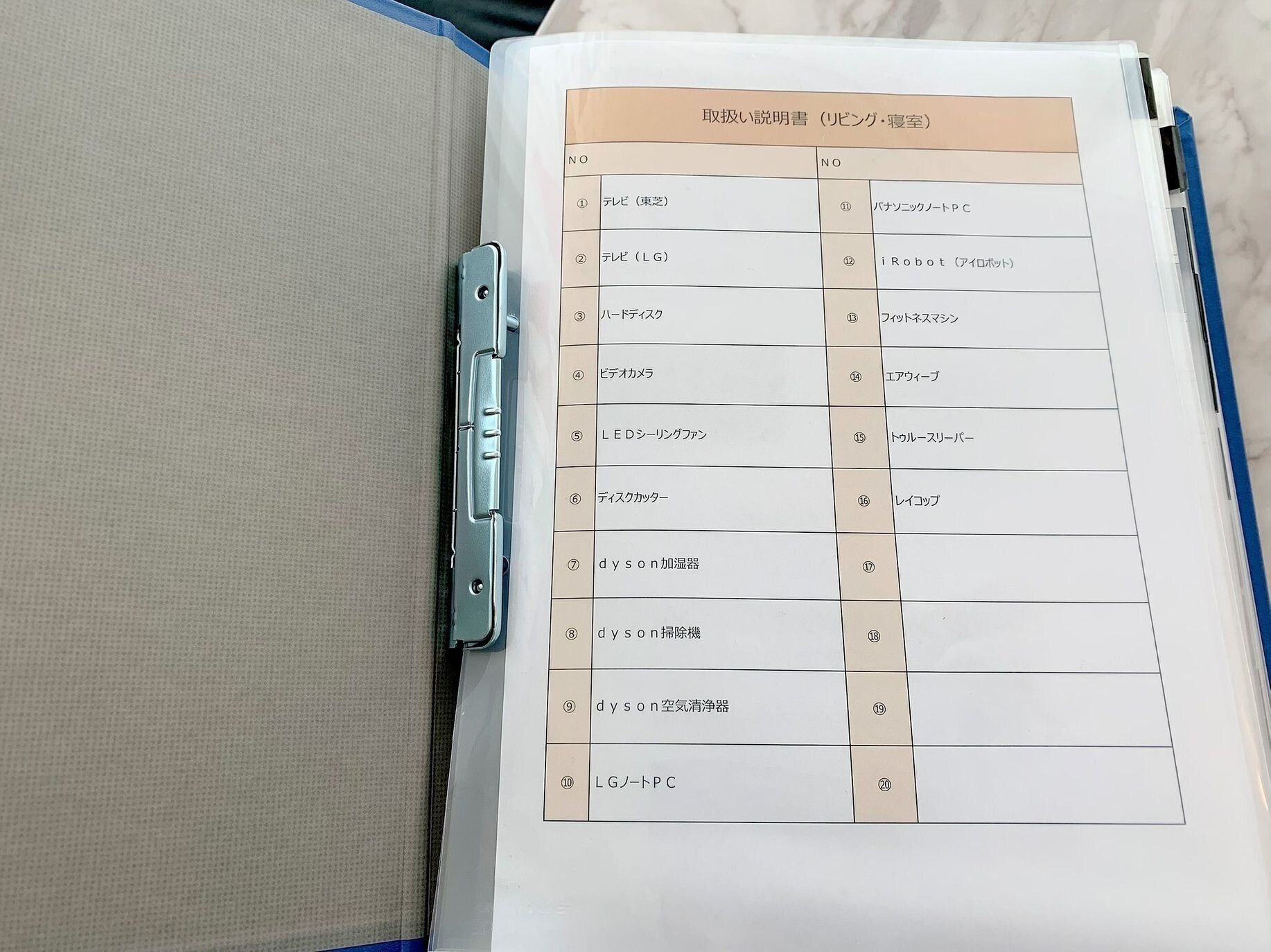 そして、家電名の横に「番号」をふっておきます。完成したら、リストはトップページに挟んでおきます。
