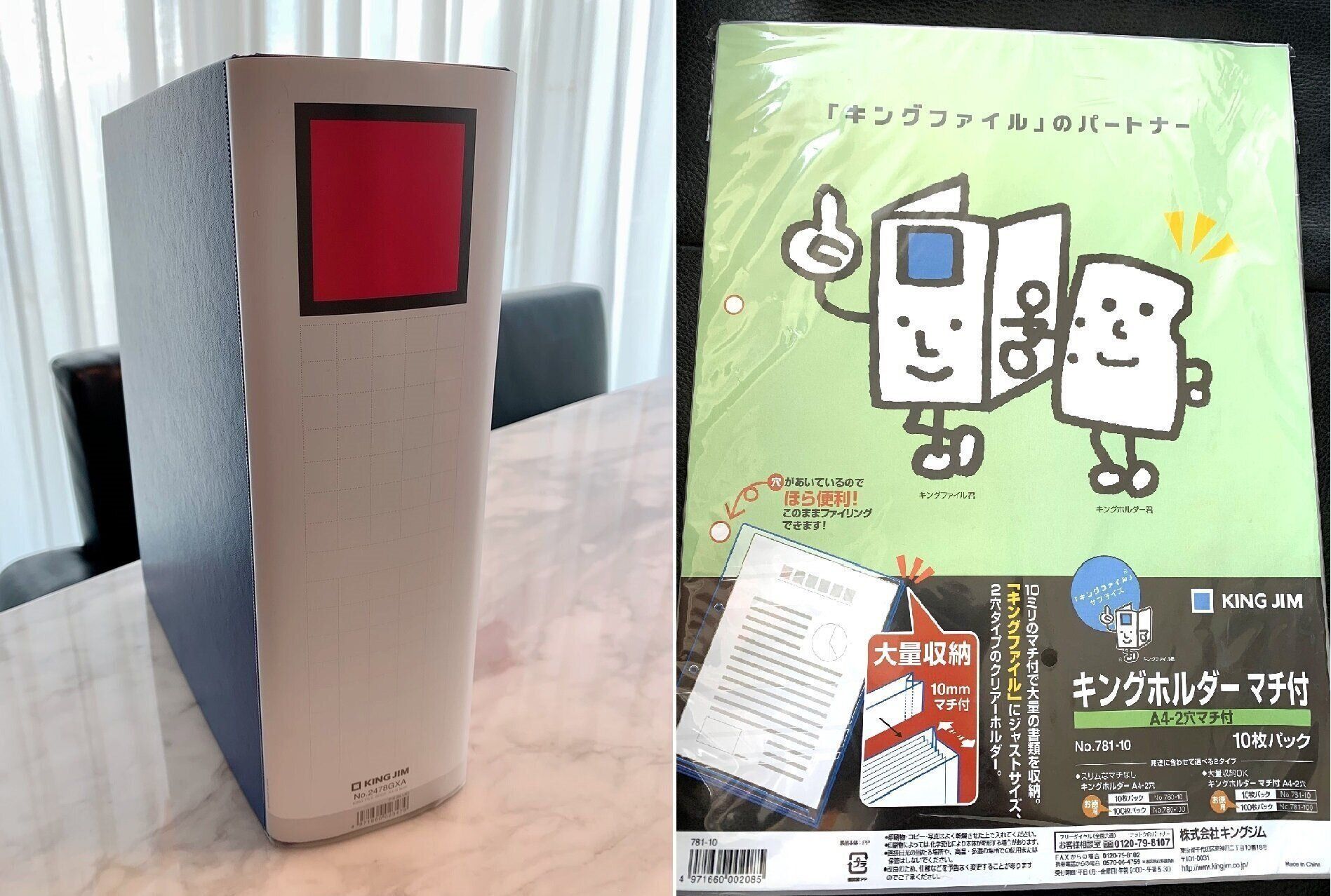 取説はまとめると重さや厚みがでるので、丈夫で沢山入るサイズのものを選ぶのがおすすめです。我が家では、キングジムの「リングファイル」と「ホルダーファイル」を使っています。ホルダーファイルは、マチ付のものを選ぶことで厚みがある取説も収納しやすくなります。