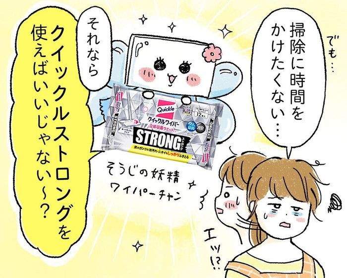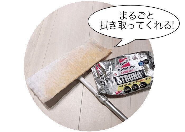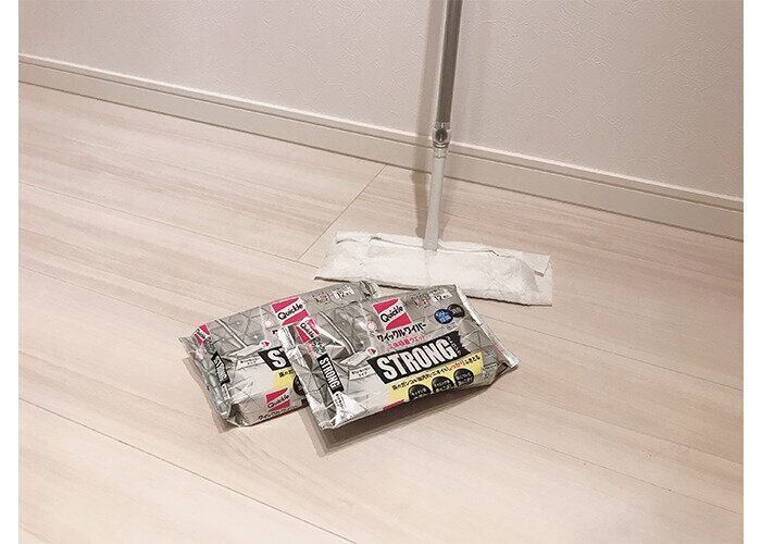 とはいえ、頻繁に雑巾がけをしたり、掃除機をかけている時間もない…。そんなときに活躍するのが、「クイックル ストロング」です!