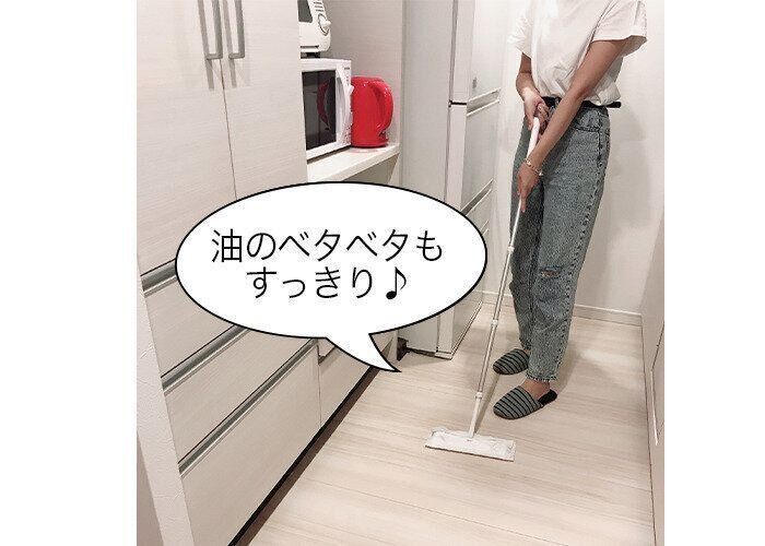 揚げ物をした後のキッチンの床は油でベタベタしていたけど、きれいに拭き取れてうれしい! いろいろな場所をどんどん拭きたくなりました。
