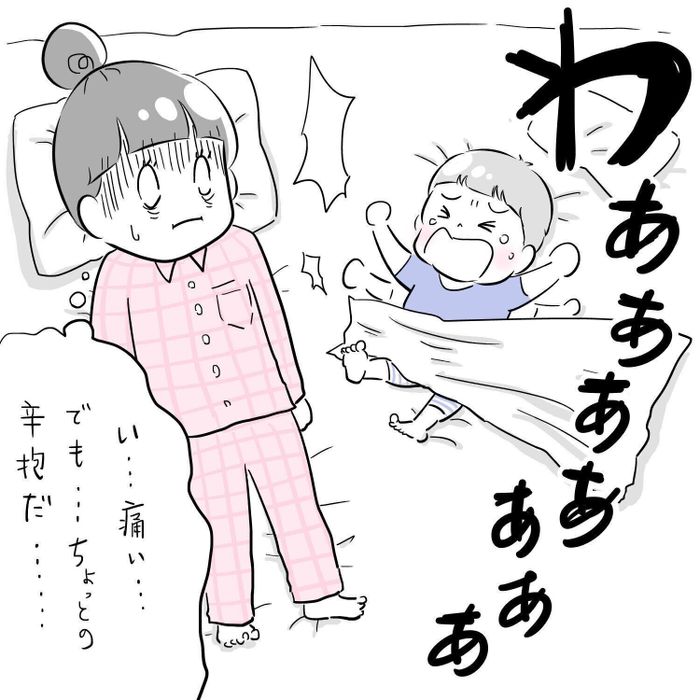 どうしようもないので、布団の少し離れたところで様子を見ていると、余計に泣き声が大きくなっていきます。