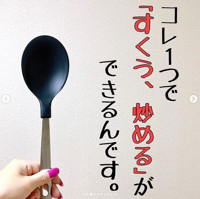 こちらのターナースプーンは、一つで、「すくう」と「炒める」ができる優れモノなんだそう。みみさんはチャーハンや麻婆豆腐などをすくうのに便利だそうで、たくさんすくいたいときや洗い物を減らしたいときにピッタリの商品ですね!