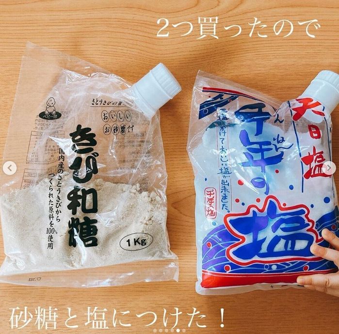 つなさんがもっと早く出会いたかったというアイテムがこちらの「どこでもキャップ」。砂糖や塩の袋に取り付けるだけで、継ぎ足しがしやすくなるんだとか。粉類が袋のまま保存でき、こぼしてしまう心配もなくなる便利アイテムですね!