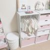 sakuさんは押入れの扉を外してロールスクリーンを取り付けています。下段はおもちゃ収納とシーズンものの衣類収納に使っているそうです。ロールスクリーンは下まで下ろすこともできるのだとか。見た目もとてもすっきりしますね!