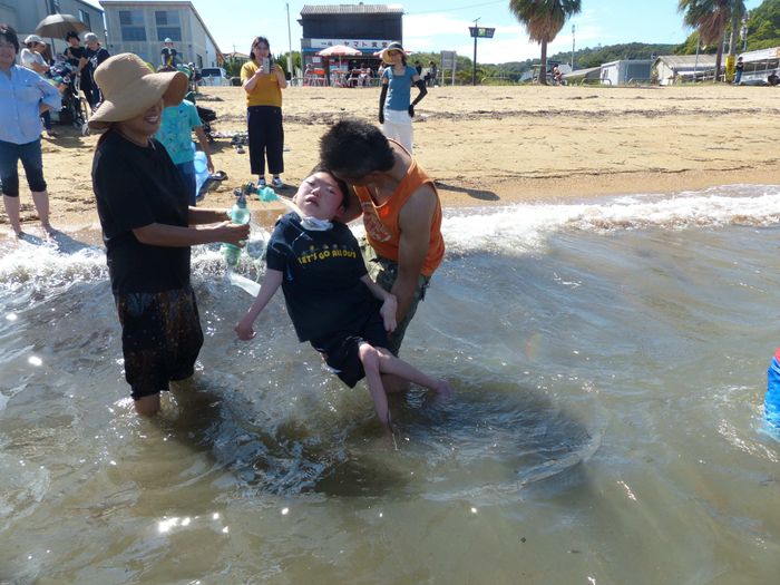 「お母さんが『たっくんはこれまで一度も波に触れたことがないんです』というので、それなら海を感じてもらおうと、抱っこをして海水の中に足をつけました。たっくんは21歳にして初めての海水と波と砂の感触に、目を白黒させながらびっくりした様子でしたが、家族みんなでいることもあって楽しそうにしていました」