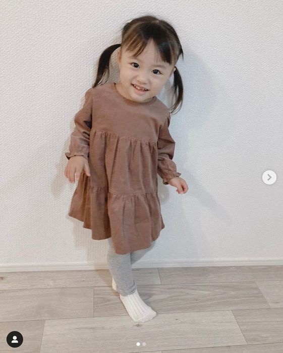 秋らしいブラウンのワンピースコーデを見せてくれたNa-chanさんキッズ。娘さんはワンピースが大好きなんだそう。一枚でかわいくなれるワンピースは秋コーデでも大活躍!