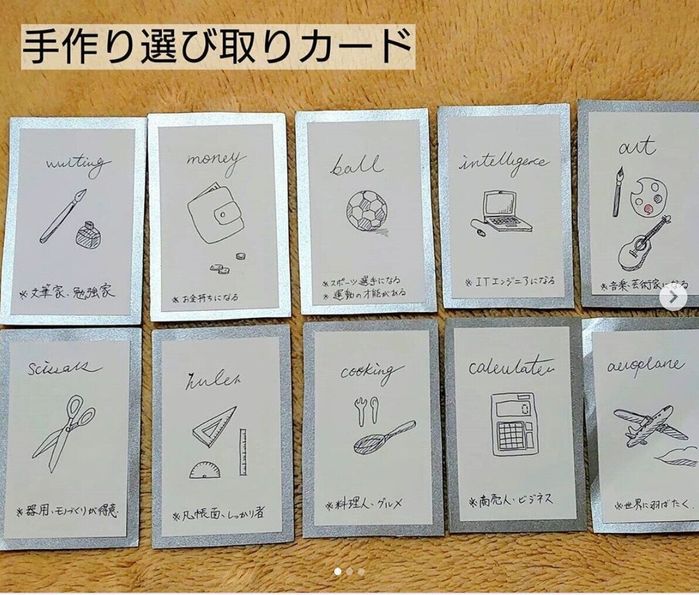 n_baby1004さんは手描きのカードを作って1歳の誕生日に選び取りをしたそうです。ベビーが選んだのは「人前に出るのが好き」という意味のmirrorだったそう。どんな種類のカードを作るか考えるのも楽しそうですね。