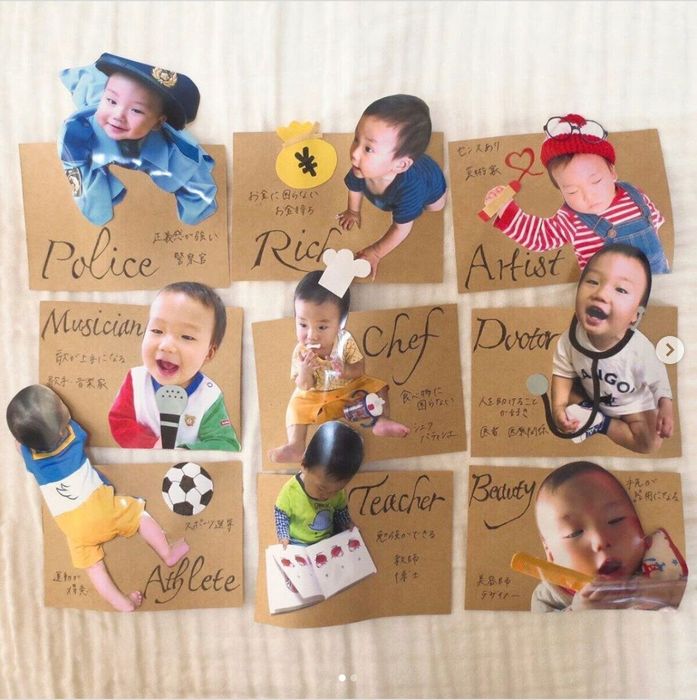 HINATAさんは、ベビーの顔写真を使って選びとりカードを作ったそうです。どの職業もお顔がうまくはまっていてユーモアもたっぷり!ベビーがどのカードを選ぶか今から楽しみにしているのだとか。