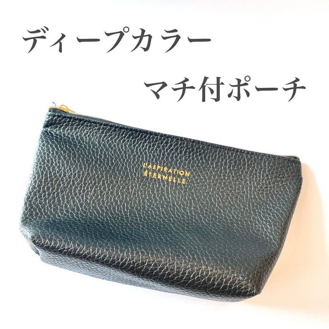 100均マガジンさんが購入したのは、ディープカラーがおしゃれなマチ付きポーチ。レザー風でファスナーがゴールドなので高見えしそうですね。ブラックを購入したそうですが、他にレッドとベージュがあったそうですよ。