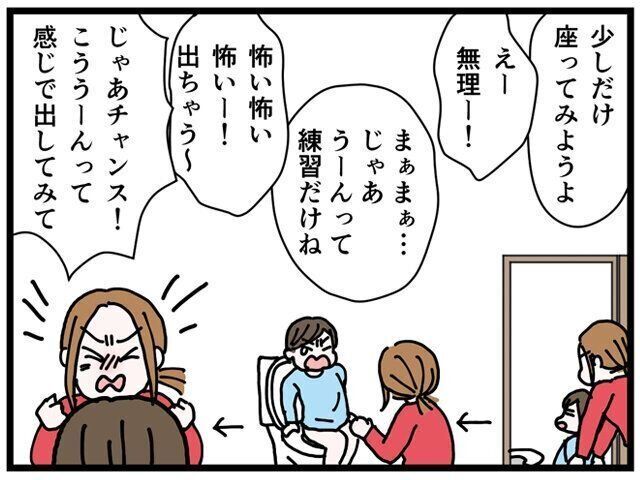 しかし、ある日次男の昼寝中に長男に便意が…!これはチャンスと、とにかく泣いても叫んでも、心を鬼にして座らせ続け…1時間くらい経った頃、もう本人も観念したというか、出さざるを得ないくらい切羽詰まって、ついにその時がきたのです!!