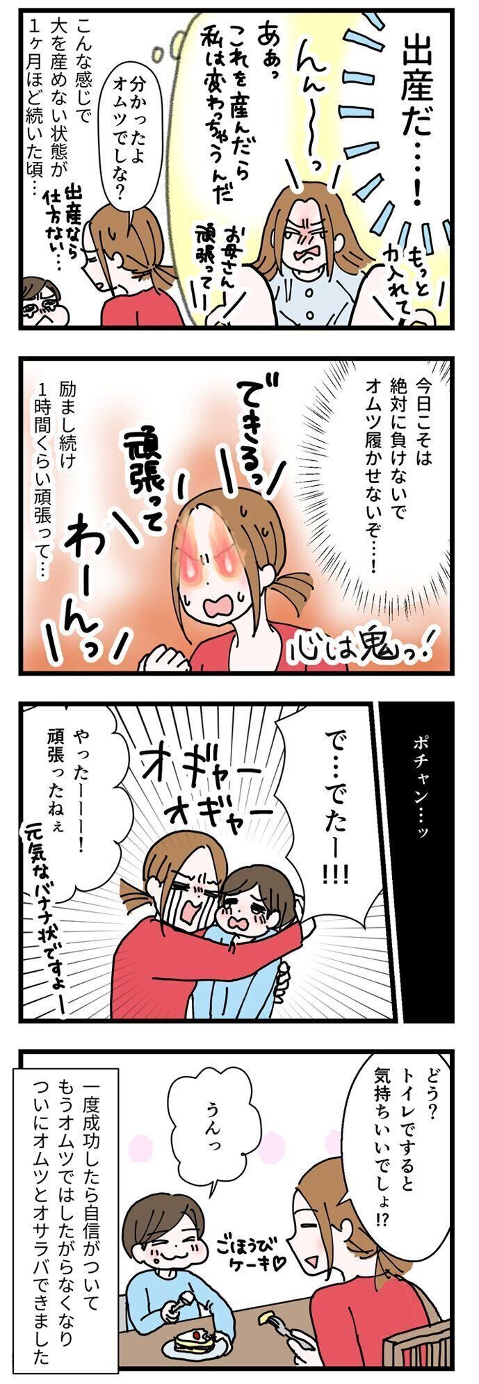 以来、もうオムツでしたいとは言わなくなりました。2日おきだった便意も、食事の後に毎回出るというくらい活発になりました。(今まで我慢していたのかなと思います…。)