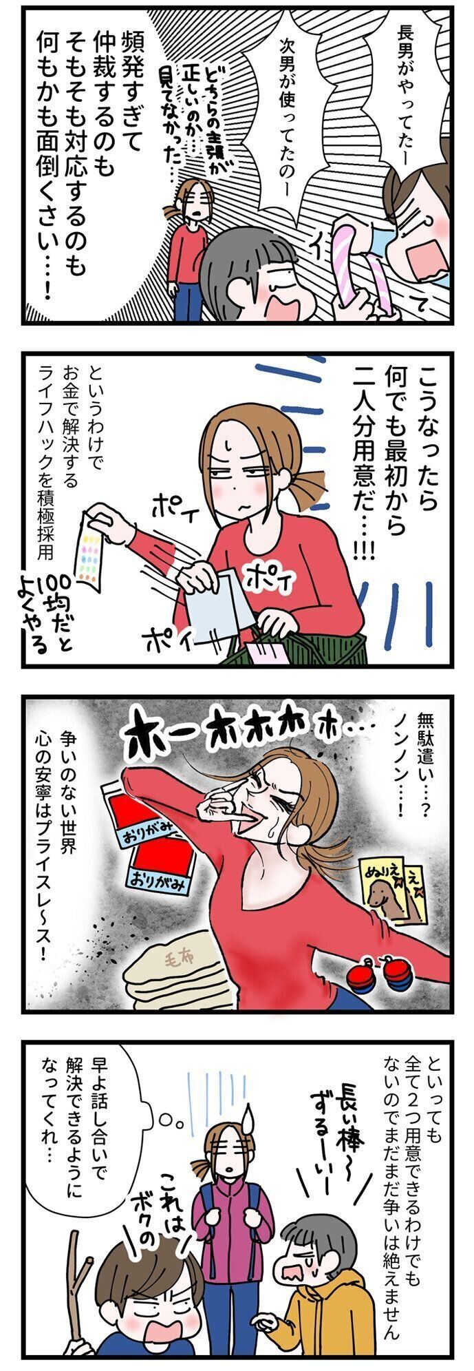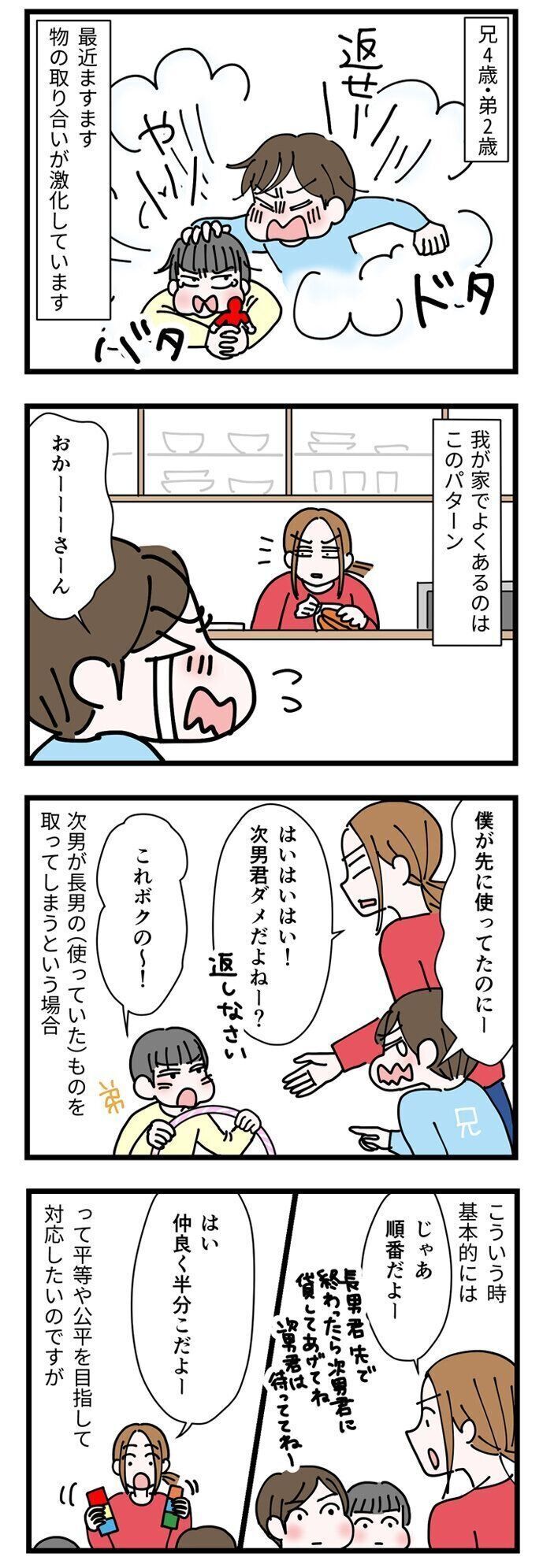 日に何度、物の取り合いによる兄弟ゲンカに付き合わないといけないのだろう…とため息です。