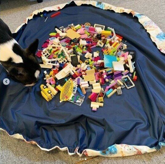 ASAHIのおべんとうきろくさんは、レゴプレイマットを手作りしています。レゴで遊ぶときはマットを広げ、片付けるときはマットを紐で縛るだけ。とても簡単に片付けられて、便利そうですね。
