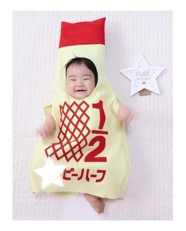 ハーフバースデーの撮影で人気の衣装写真を楽しんだI-chan mamaさん。面白くてかわいいうえ、まさにハーフバースデーでした撮影できない写真ができて記念になりますよね。赤ちゃんも満面の笑顔で楽しそう!