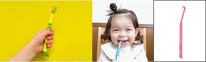 仕上げ磨き用は柄が長くヘッドがコンパクトなものを選びましょう。仕上げ磨き用と記載のある歯ブラシでもいいですし、写真右端のような1本磨き用歯ブラシを利用すると磨きやすいです。乳歯は永久歯に比べ大きさが小さく、子どもの口も小さいのでヘッドが小さい歯ブラシをチョイスするのがいいでしょう。