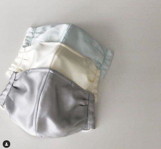 m_iさんは妹さんにシルクマスクを手作りしてもらったそうです。少しくすんだブルーやグレーなどのカラーが素敵!お気に入りのシルクの生地で自分だけのシルクマスクを作るのも良いですね。