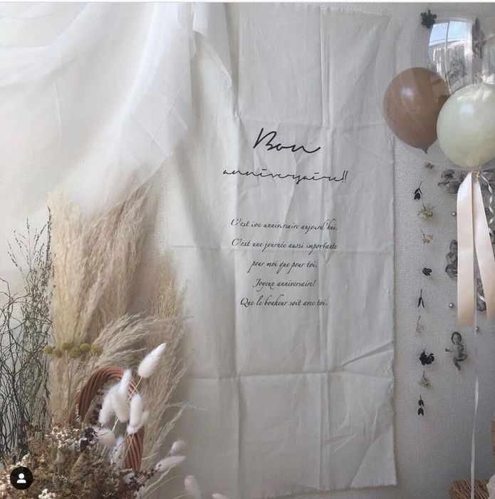 最近お誕生日の飾りアイテムとして特に人気があるのがタペストリー。Akiさんはフォントが気に入ってこちらのタペストリーをオーダーしたそう。おうちでのパーティーにはもちろん、記念撮影にも使えるおしゃれアイテムです。