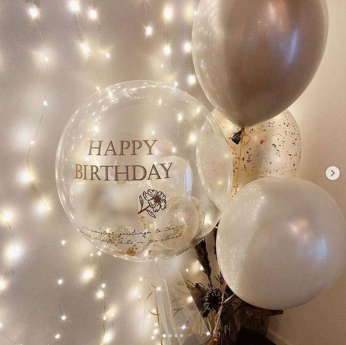 shi---さんはお名前入りのバースデーバルーンをオーダーで注文したそう。バルーンと照明の相乗効果でとってもゴージャスな雰囲気に♪ 市販のものでも十分素敵ですが、名前入りの特別なアイテムがあると嬉しさも倍増しそうですね。