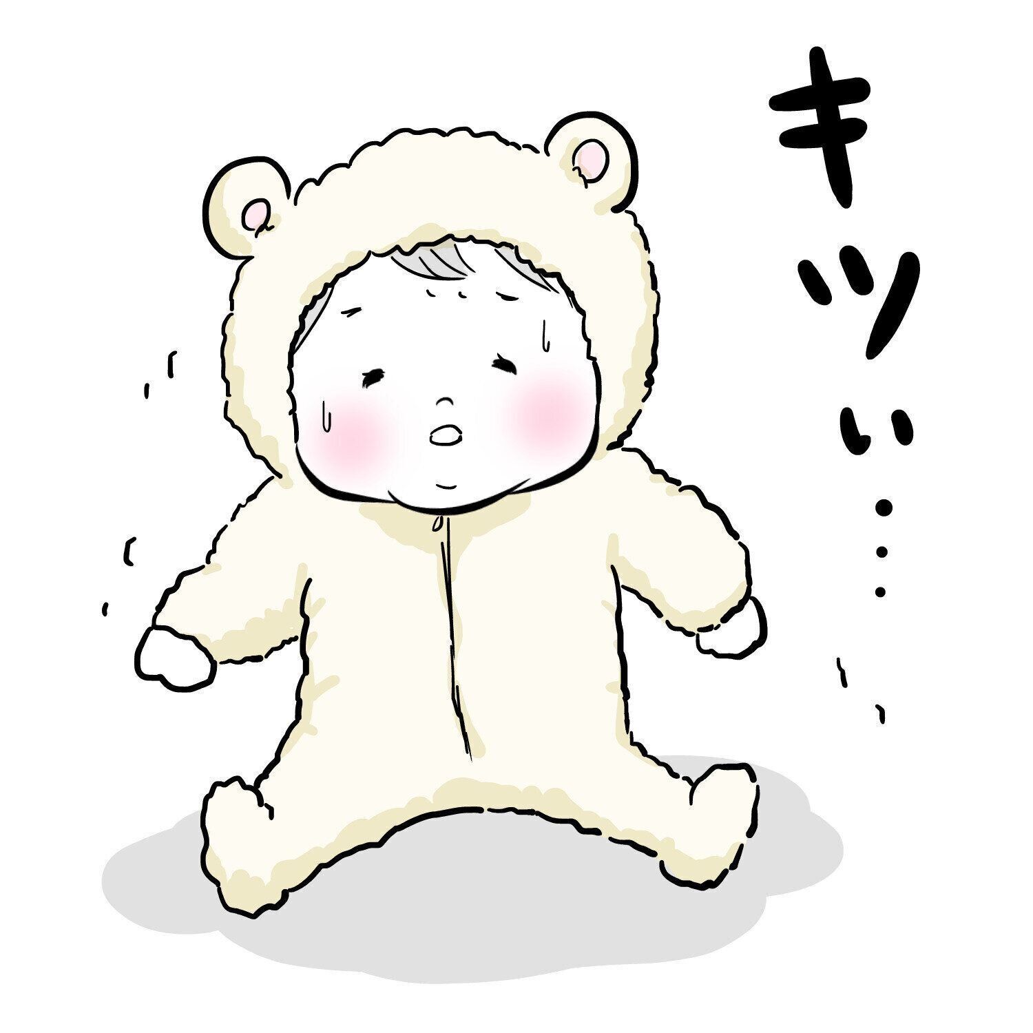しかし、「まぁカバーオールだし、大きめに作られてるはず……」と思い、一応あのクマのカバーオールを着せてみることにしました。