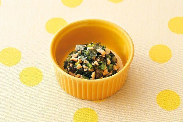 (3)器にひき割り納豆を入れてよくかき混ぜ、だし汁、(1)、(2)を加えてあえる。しょうゆで味をととのえ、ごま油で風味をつける。