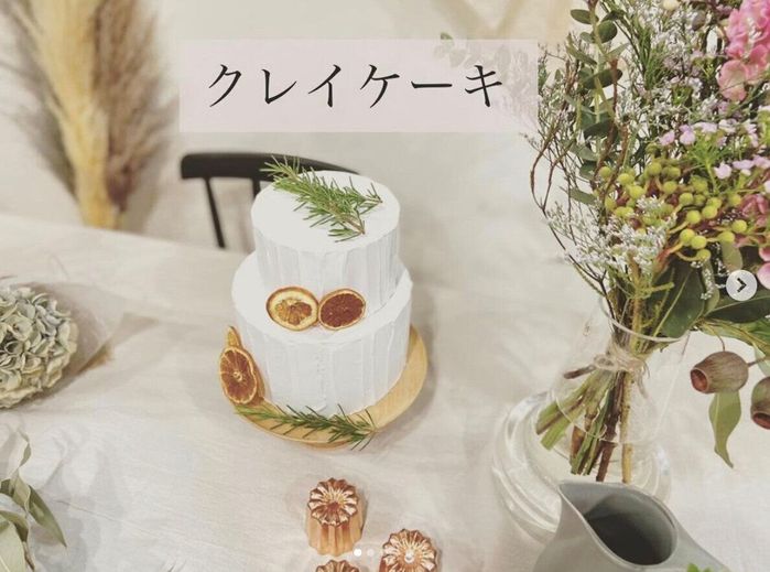 こちらはMakieさんが作ったお花とドライフルーツが乗ったかわいいクレイケーキ。実は1年前に作ったものだそうで、今年もこのクレイケーキでお祝いするのだとか。お気に入りのケーキができたら保管しておいて翌年も使えるのですね。