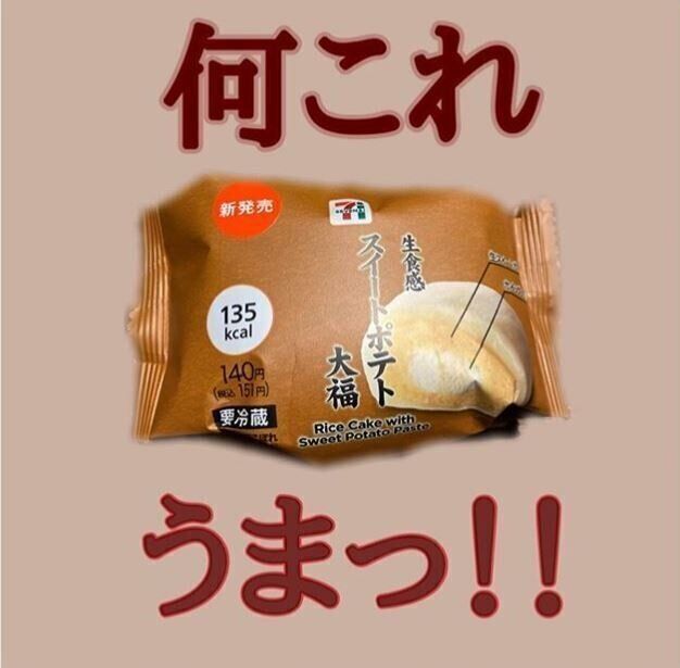ぷーさんが買ったのは「生食感 スイートポテト大福」。大福の中にスイートポテトの餡とホイップクリームが包まれているんだそうです。外側の大福はもっちりとしてやわらかく、中のスイートポテト餡とホイップクリームが絶妙に合っていて、食べている途中でもう1個欲しくなるほど美味しかったそうですよ。和洋を組み合わせた絶品スイーツが140円で買えるのは、コンビニスイーツならではですよね。