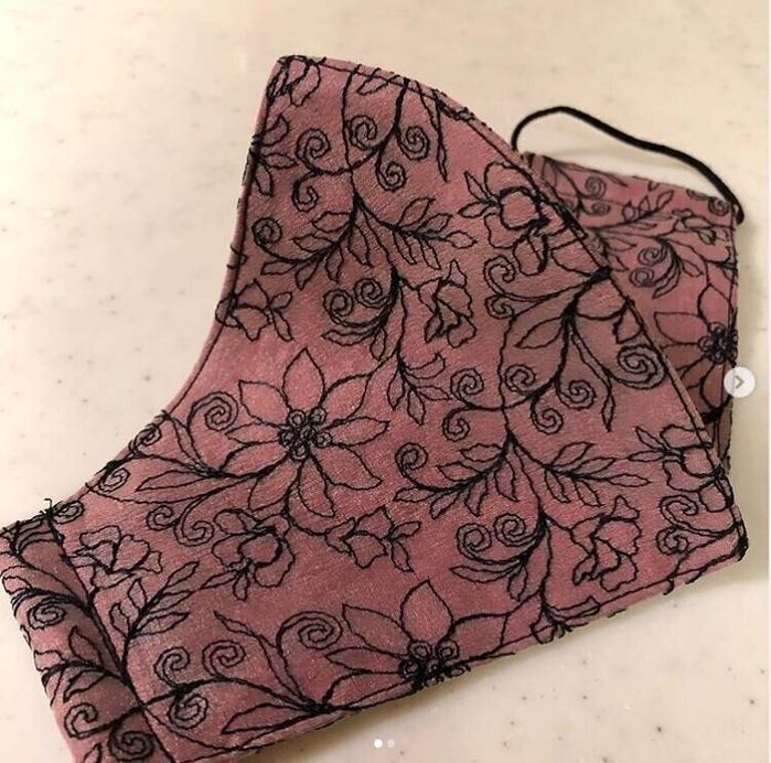 上品なカラーとレース模様の生地でマスクを手作りしたkazueさん。大人っぽい服でもカジュアルな服でも似合いそうな、おしゃれなマスクですよね。それどこで買ったの⁉と注目されそう!