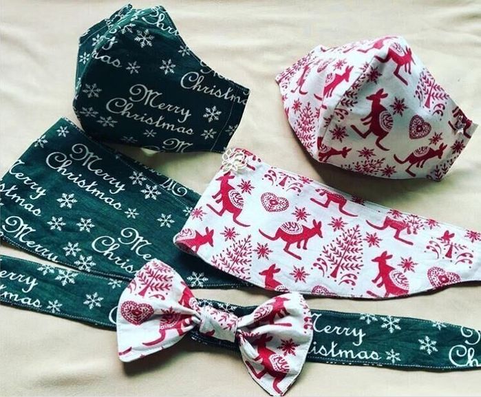 Airiさんもクリスマス柄で家族みんなで楽しめるマスクを手作り。夫婦用だけでなくワンちゃん用のリボンもお揃いで作ったそうですよ。大人かわいい柄なので、着けているだけで楽しい気分になりそうですよね。朝夕の寒い時間のお散歩も、お揃いの柄でコーディネートしたかわいいワンちゃんと一緒なら、いつもより楽しくなりそう♪