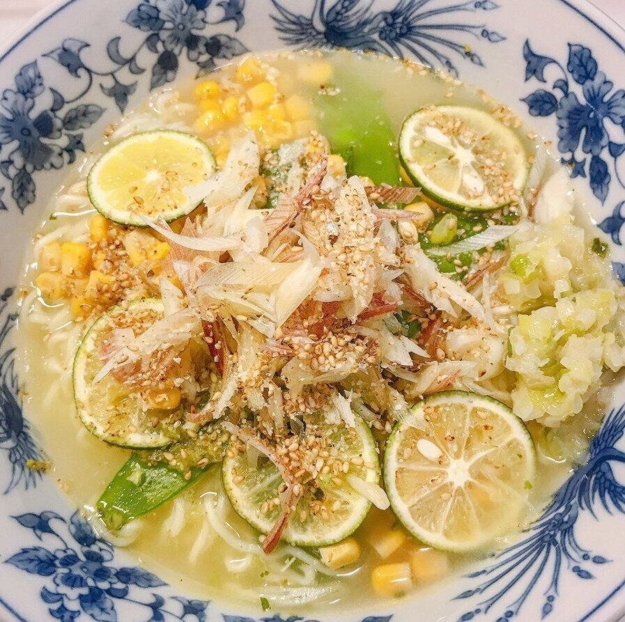 まどかさんはこちらの豪華なアレンジを!すだちとみょうがをたっぷり乗せてみたそう!すだちを絞るとさっぱりして美味しいんだとか!こんな豪華な塩ラーメン食べてみたくなりますね。