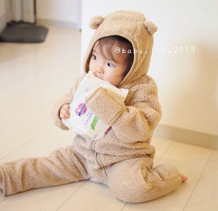 こちらはモコモコとした素材やくま耳が特徴的で、まるでテディベアのような可愛らしさですね。りさこさんは、こちらを着ているお子さんの姿に癒されるんだとか♪ これ一枚で目を引くコーディネートになりそうです。