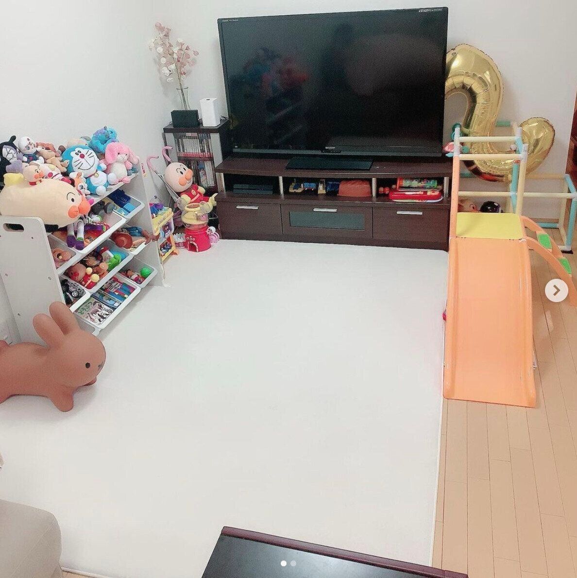 まゆちゃんさんは、キッズスペースにあふれていたおもちゃなどを片付けてお部屋をすっきりさせたそうです。赤ちゃんの頃から使っていたものや、思い出があって捨てられなかったものも思い切って処分して、こんなにスペースがきれいに!