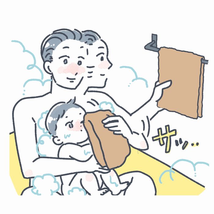 寒い季節はとくに、親子ともに湯冷めが心配。大人と赤ちゃんのしたくを交互に行うといいでしょう。赤ちゃんの体は浴室で軽くふいて、バスタオルにくるんで脱衣所で待たせている間に、大人がささっと着替えるとスムーズです。