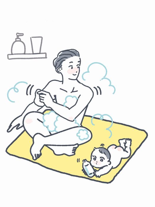 おすわり前のワンオペおふろは、赤ちゃんと時間差で入るのもあり