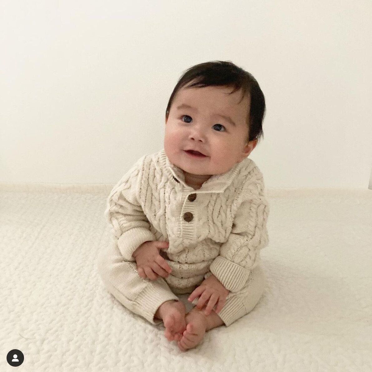 こちらはニット素材のロンパースです。Riさんの地域では雪が降っており、すっかり冬の寒さとなっているのでこちらのアイテムが大活躍しているそうです。可愛いだけでなく、あたたかさもバッチリなのが嬉しいですよね。